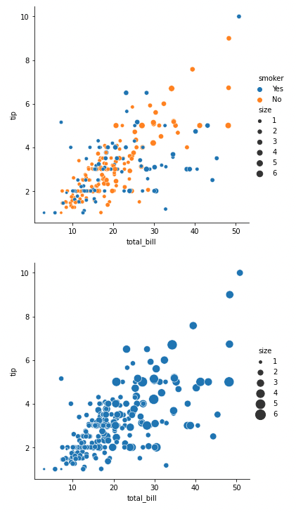 seaborn의 relplot()을 사용하면 scatterplot()에서 제공하는 모든 기능을 사용할 수 있습니다.